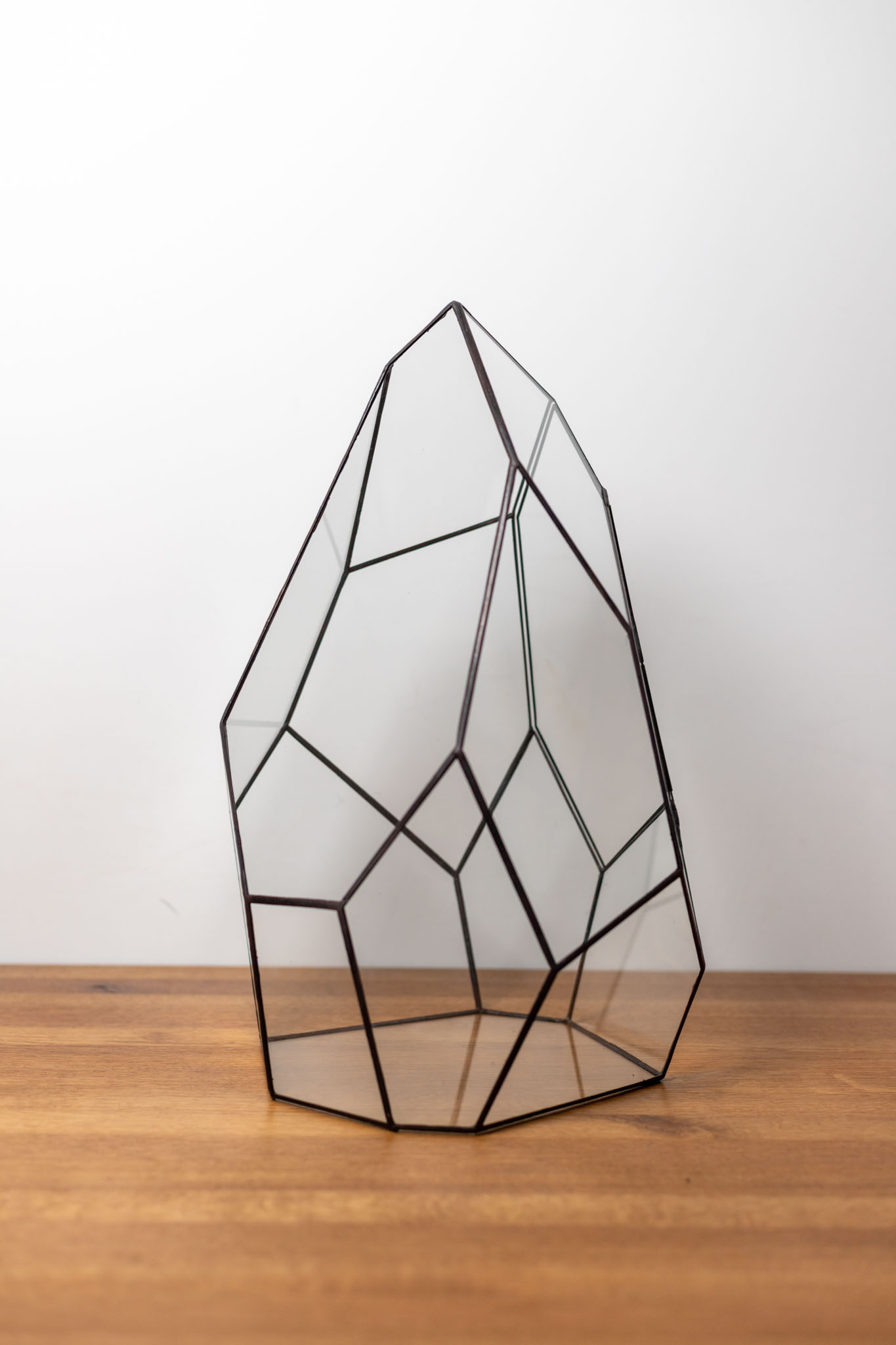 Transform your space with this handmade stained glass terrarium, blending contemporary design with functionality. Expertly crafted by us, this geometric glass terrarium adds a modern flair to any home or office, making it not just a decorative piece but a statement of style. This stained glass container features a minimalist design, perfect for creating your own mini ecosystem with plants, moss, or any decorative elements that suit your taste. Its enclosed structure helps retain humidity, ensuring easy plant care with occasional misting or watering, while also protecting delicate plants from dust and drafts.
