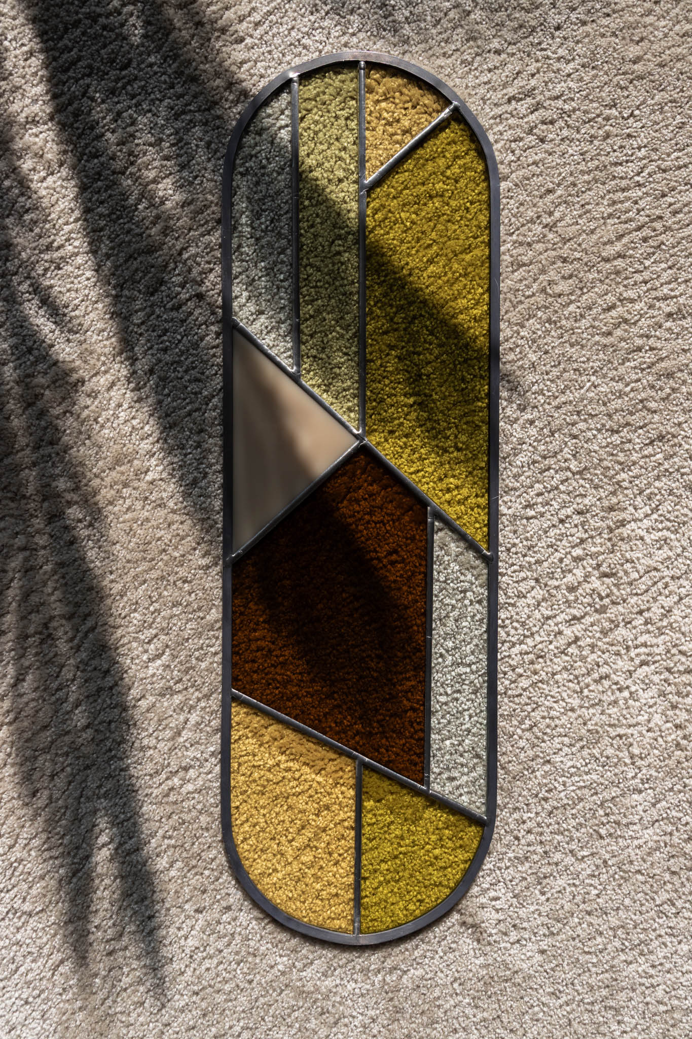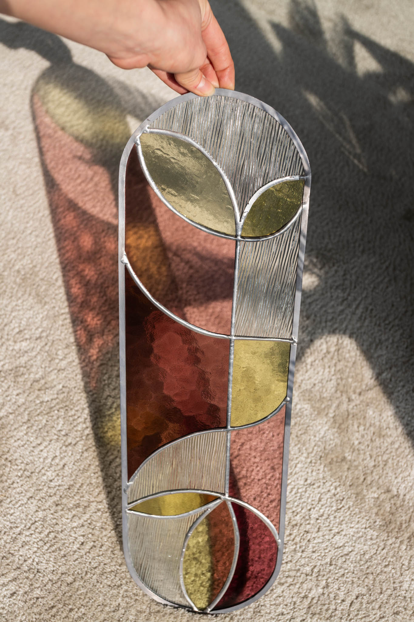 For lovers of clean lines and contrasting colors, the LINES painting is handmade using the Tiffany technique. Moreover, precisely carved glass creates a modern geometric design, adding dynamism and unique character to the space. Additionally, the interplay of colors and light further ensures that each painting remains truly original.