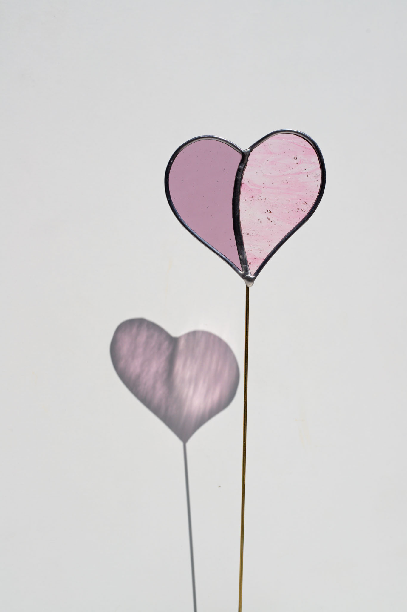 Stained glass suncatcher heart on spike for plant pot or garden