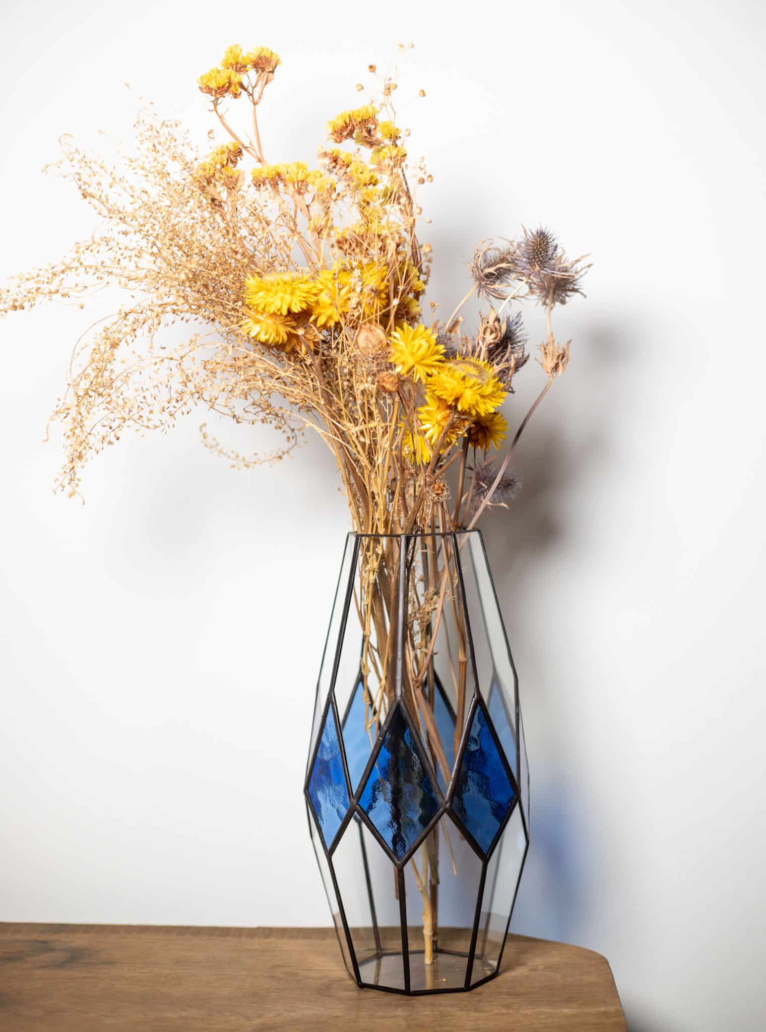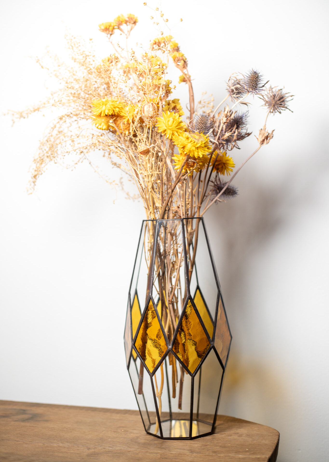 Every interior tells its own story, and our handmade stained glass fusion vase reflects this beautifully. Crafted from a harmonious blend of clear and colored glass, it brings artistry, craftsmanship, and timeless elegance into any space. Using the Tiffany technique, it showcases precise details and a delicate play of light. Each piece is individually handcrafted, making every vase truly one of a kind.