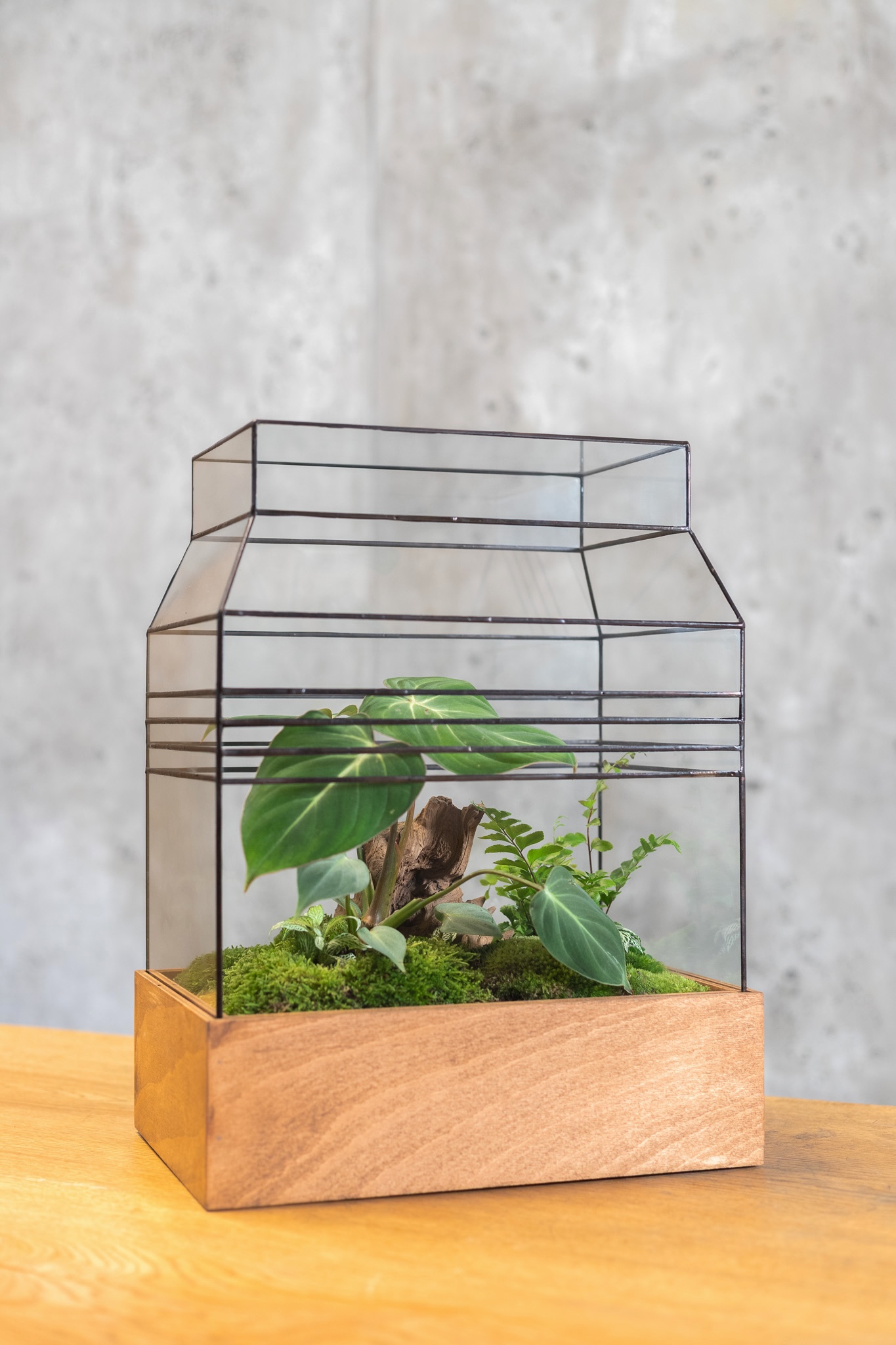 Wardian Case ZIKURAT Terrarium on oak base for plants