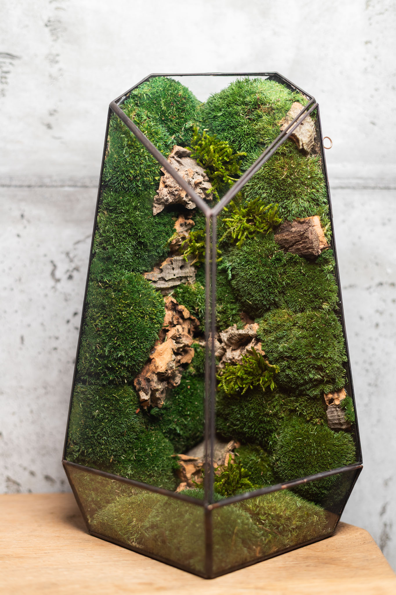 - Visual Depth: The back of the glass jar is blackened to make the vibrant moss colors pop.